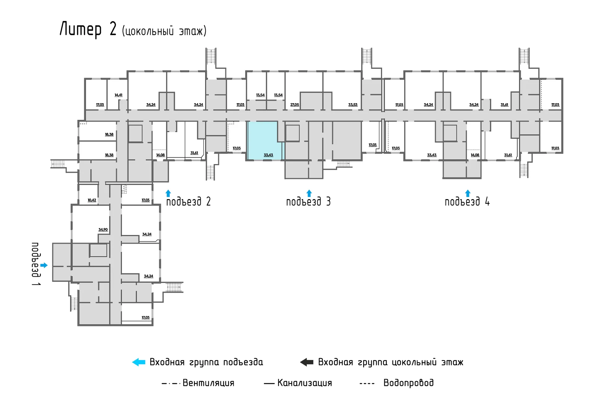 - Цены на помещения цокольного этажа в ЖК «Молодежный 2» Литер 2, помещение 42 - ВКБ-Новостройки