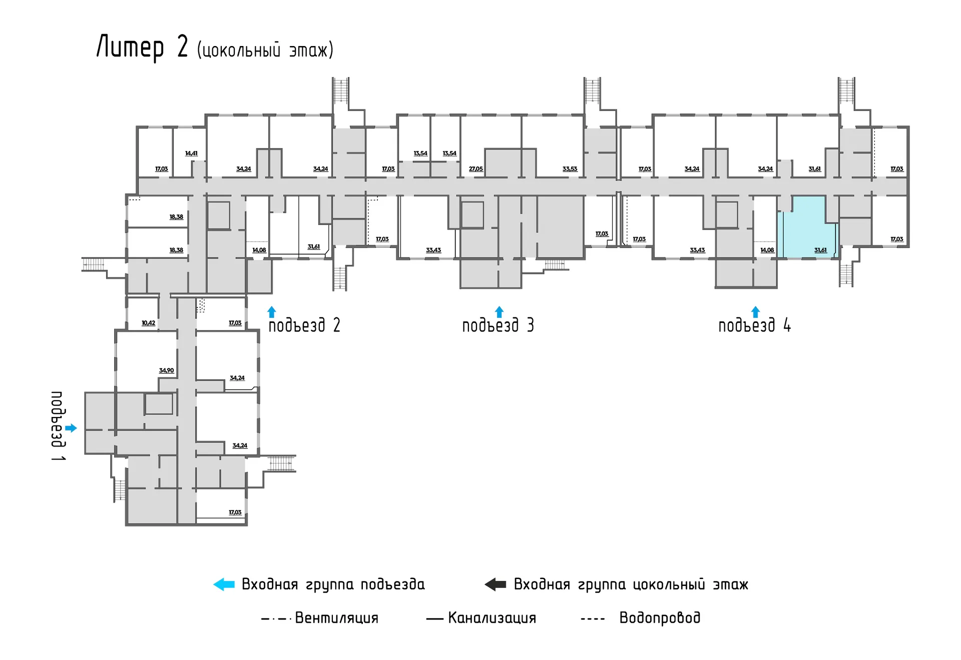 - Цены на помещения цокольного этажа в ЖК «Молодежный 2» Литер 2, помещение 75 - ВКБ-Новостройки