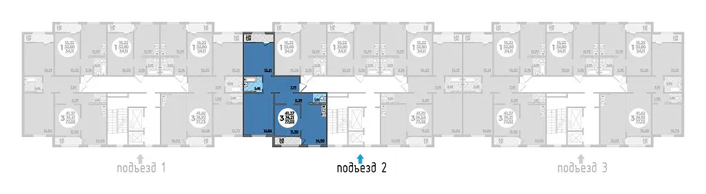 3-комнатная квартира 77.02м2 в ЖК Восточный, №126