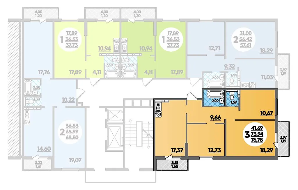 3-комнатная квартира 76.78м2 в ЖК Суворовский, №180