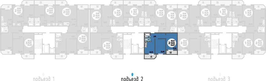 2-комнатная квартира 56.07м2 в ЖК Восточный, №129