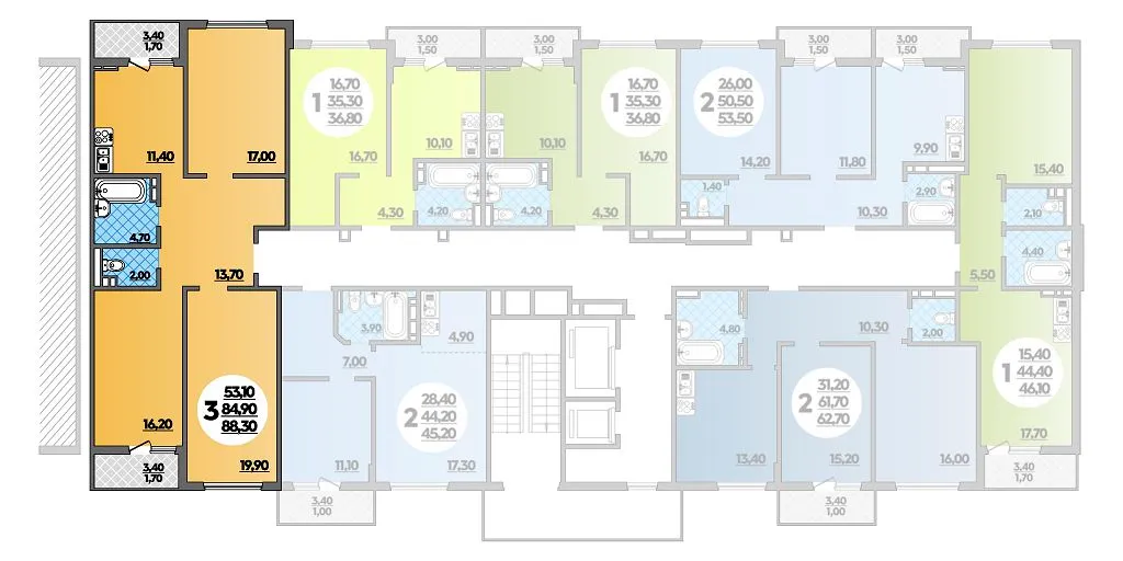 3-комнатная квартира 88.30м2 в ЖК Парк у дома, №226
