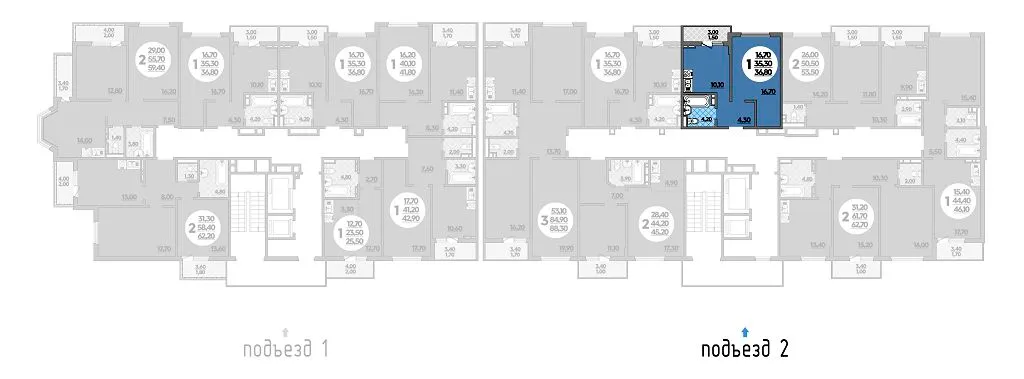 1-комнатная квартира 36.80м2 в ЖК Парк у дома, №242