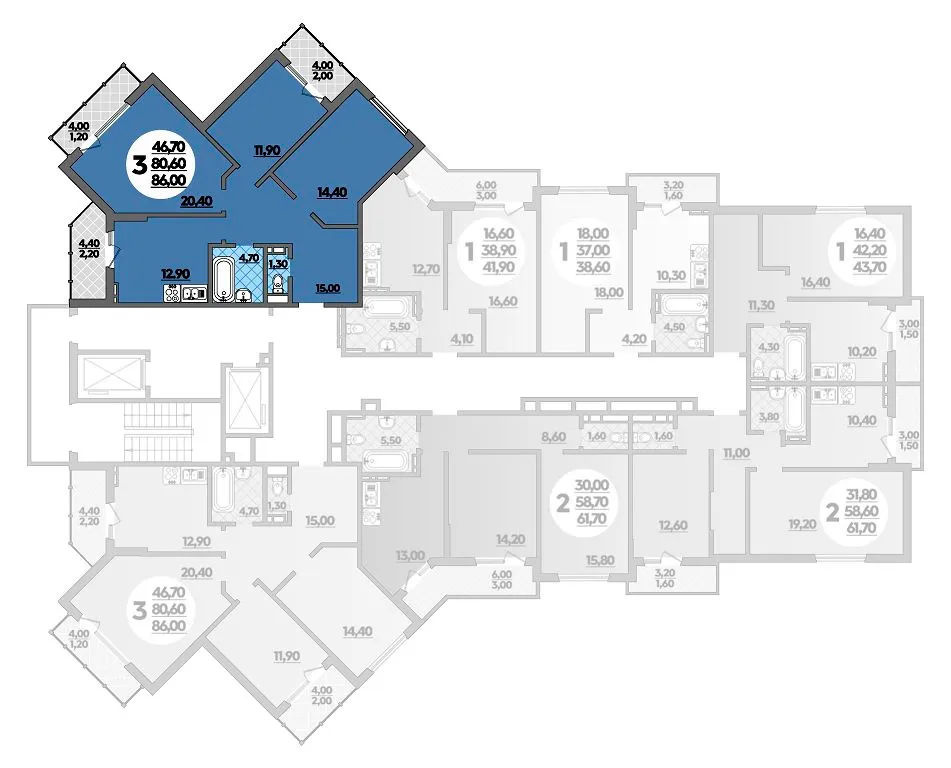 3-комнатная квартира 86.00м2 в ЖК Парк у дома, №025