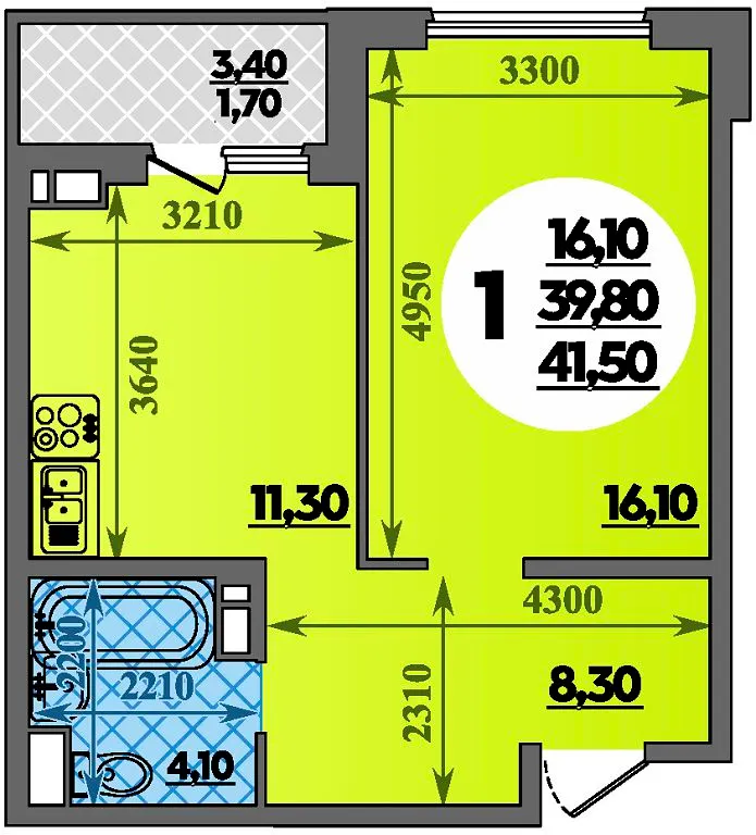 1-комнатная квартира 41.50м2 в ЖК Парк у дома, №131