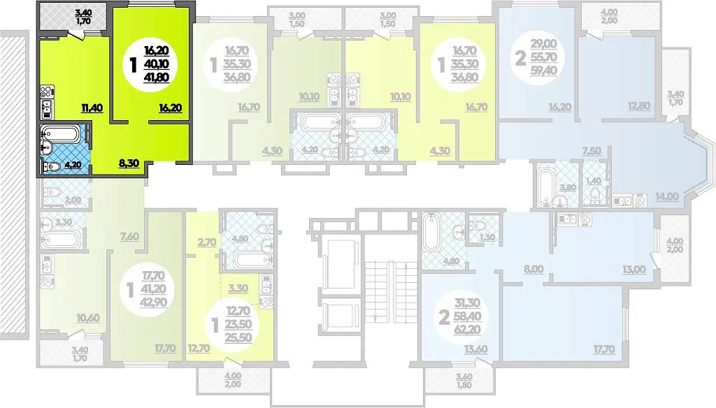 1-комнатная квартира 41.80м2 в ЖК Парк у дома, №206