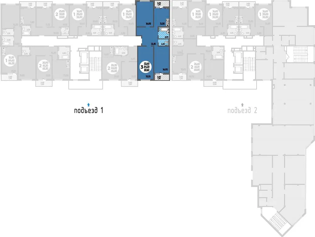 3-комнатная квартира 87.60м2 в ЖК Парк у дома, №013