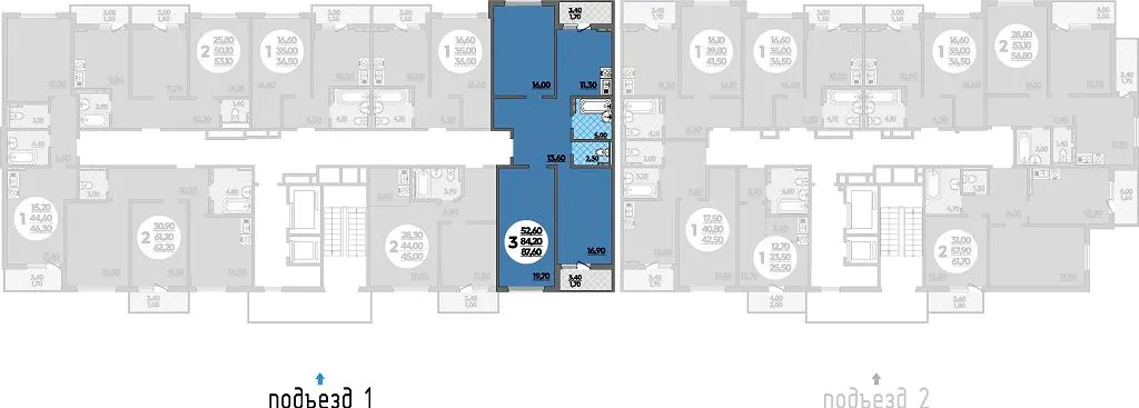 3-комнатная квартира 87.60м2 в ЖК Парк у дома, №048