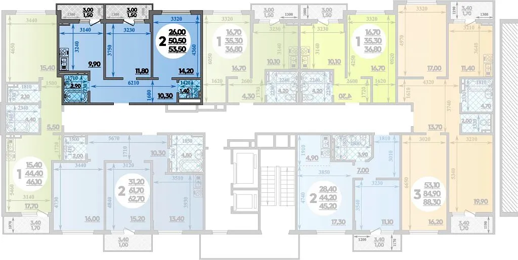 2-комнатная квартира 53.50м2 в ЖК Парк у дома, №094