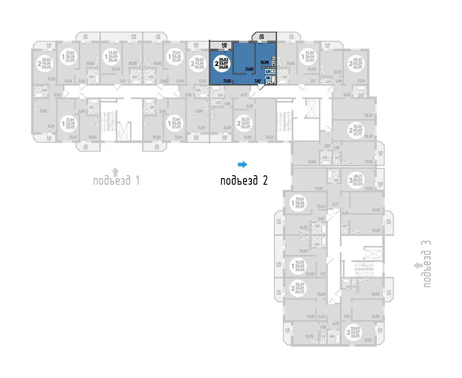 2-комнатная квартира 56.08м2 в ЖК Молодежный 2, №086