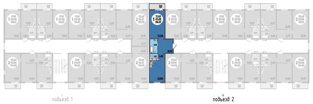 1-комнатная квартира 48.57м2 в ЖК Тихорецк, №061