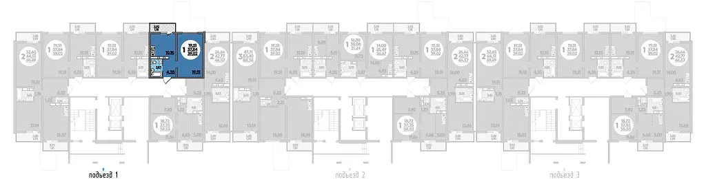 1-комнатная квартира 39.02м2 в ЖК Восточный, №004