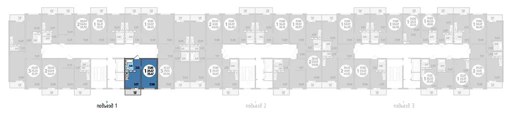 1-комнатная квартира 35.67м2 в ЖК Суворовский, №056