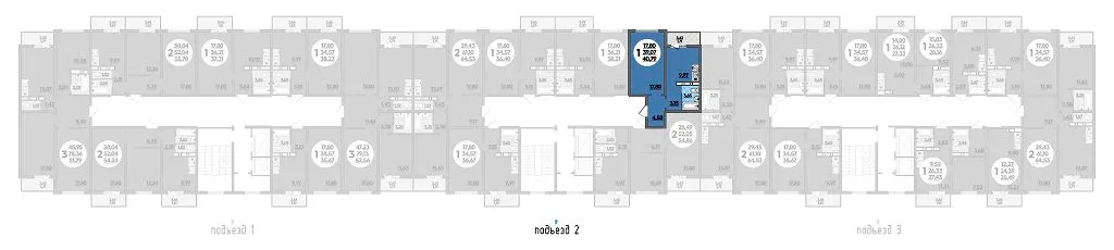 1-комнатная квартира 40.79м2 в ЖК Суворовский, №208