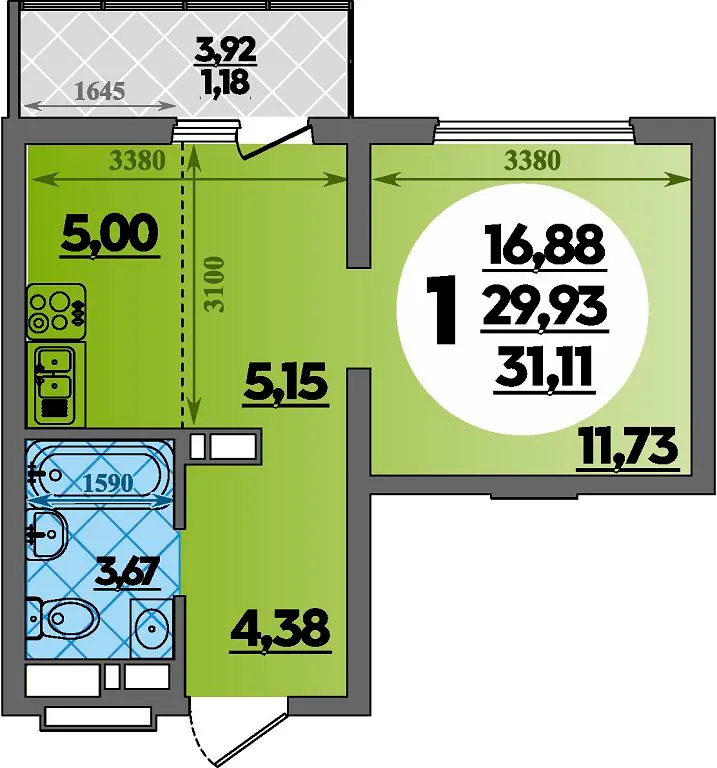 Cтудия 31.11м2 в ЖК Предгорье Лаго-Наки, №120