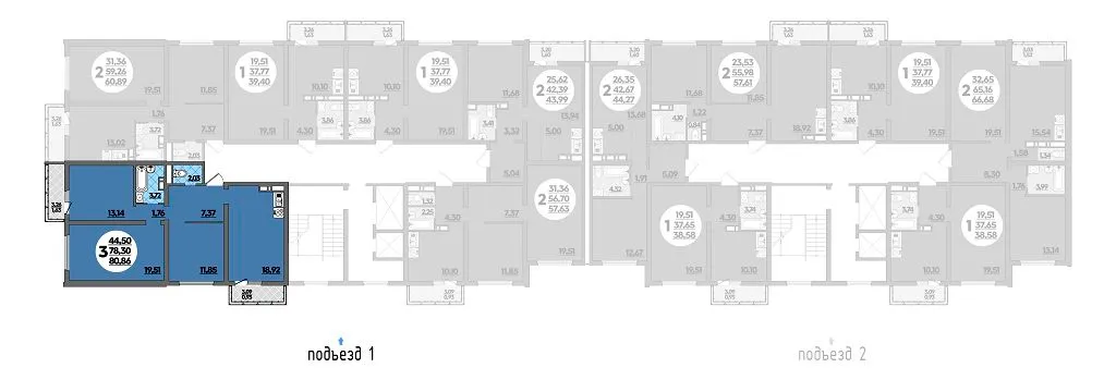 3-комнатная квартира 80.86м2 в ЖК Город у моря, №019