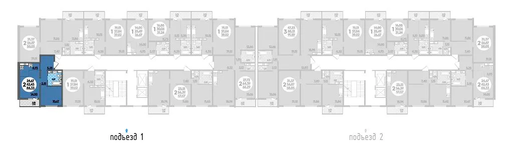 2-комнатная квартира 44.33м2 в ЖК Восточный, №011