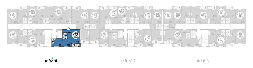 2-комнатная квартира 43.46м2 в ЖК Молодежный 2, №028