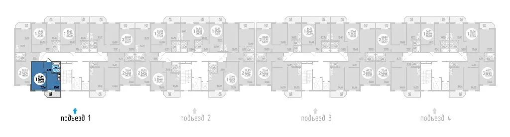 1-комнатная квартира 37.49м2 в ЖК Восточный, №019
