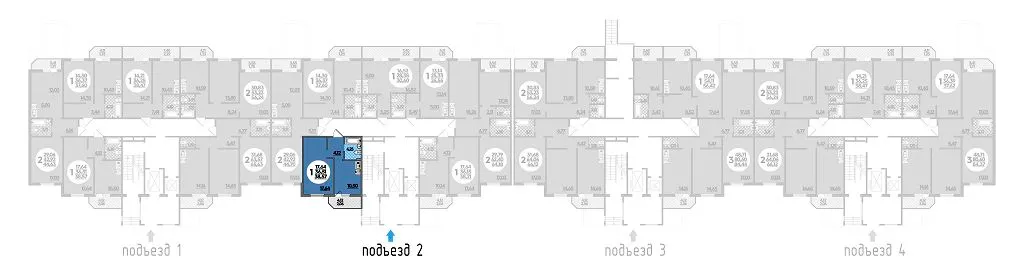 1-комнатная квартира 38.57м2 в ЖК Восточный, №097