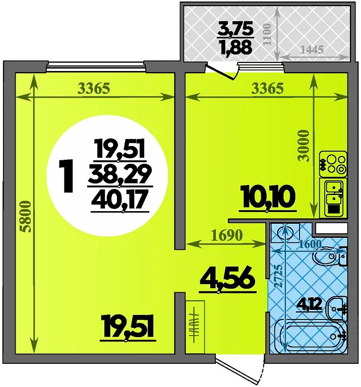 1-комнатная квартира 40.17м2 в ЖК Горгиппия, №114