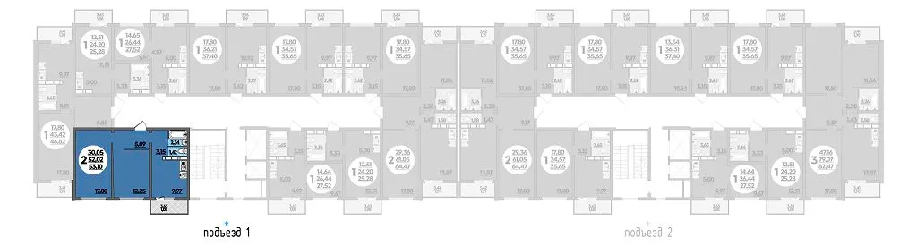 2-комнатная квартира 53.10м2 в ЖК Платовский, №141