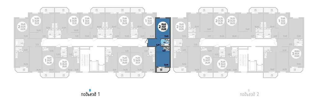 2-комнатная квартира 44.88м2 в ЖК Суворовский, №185