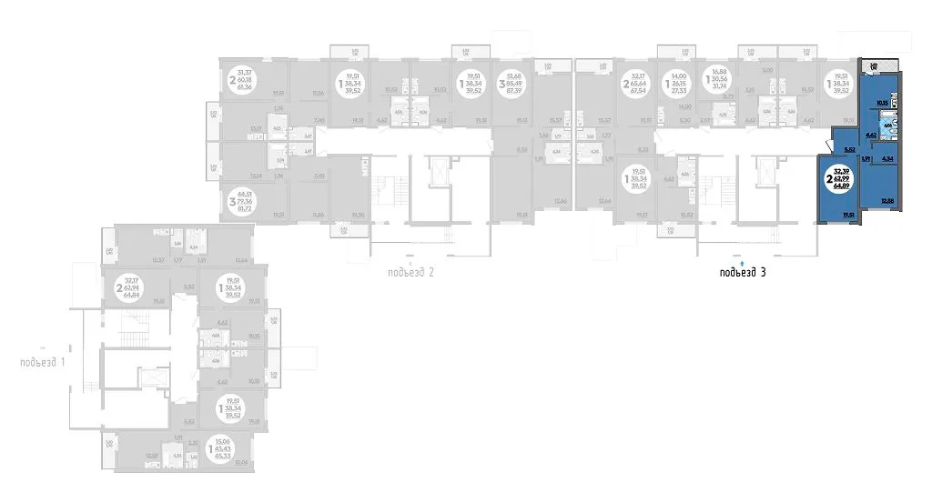 2-комнатная квартира 64.89м2 в ЖК Предгорье Лаго-Наки, №095