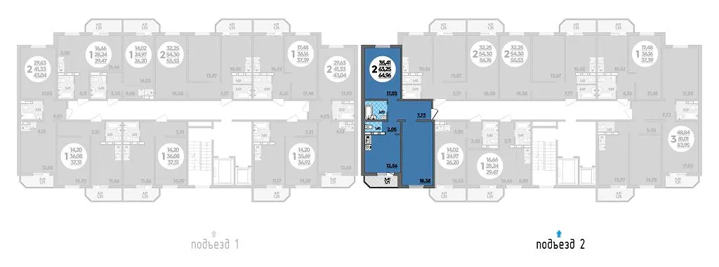 2-комнатная квартира 64.96м2 в ЖК Суворовский, №240