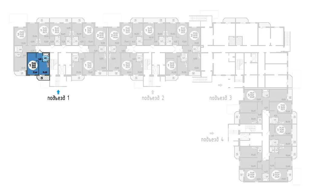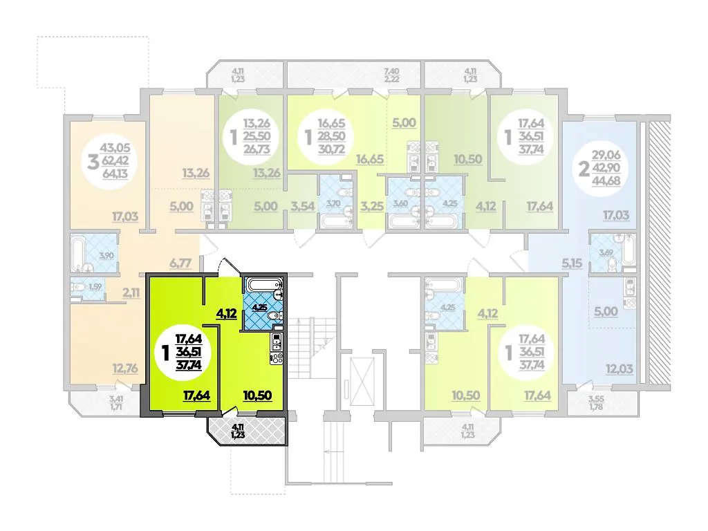 1-комнатная квартира 37.74м2 в ЖК Молодежный 2, №001