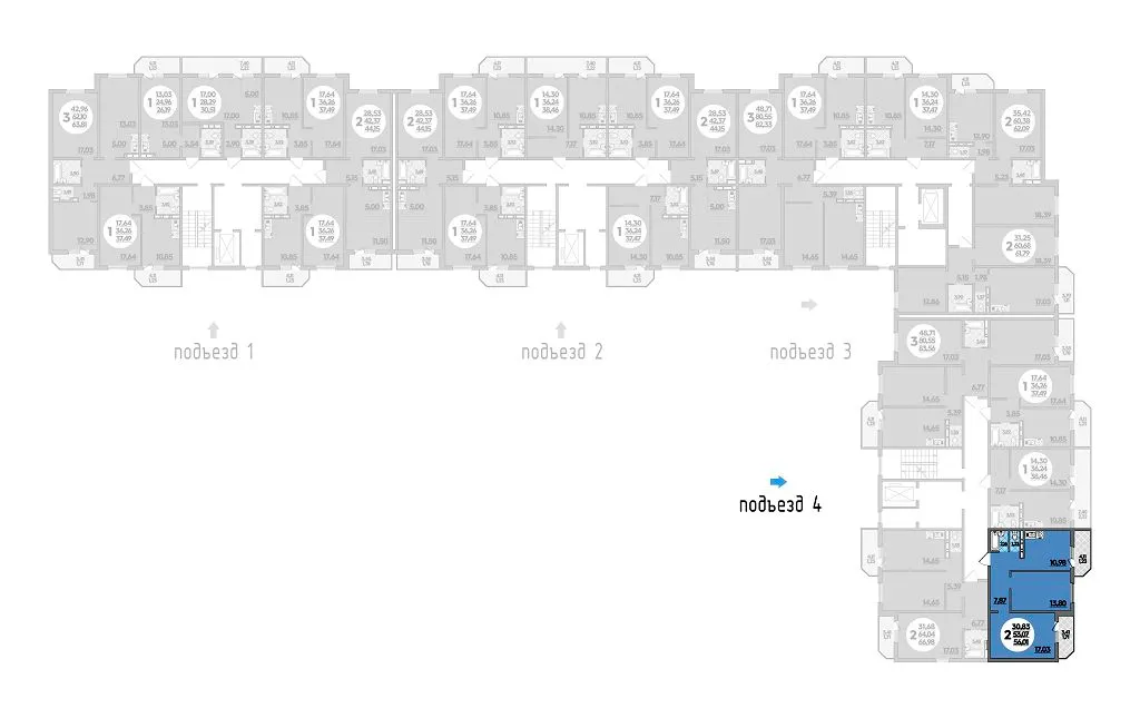 2-комнатная квартира 56.01м2 в ЖК Молодежный 2, №181