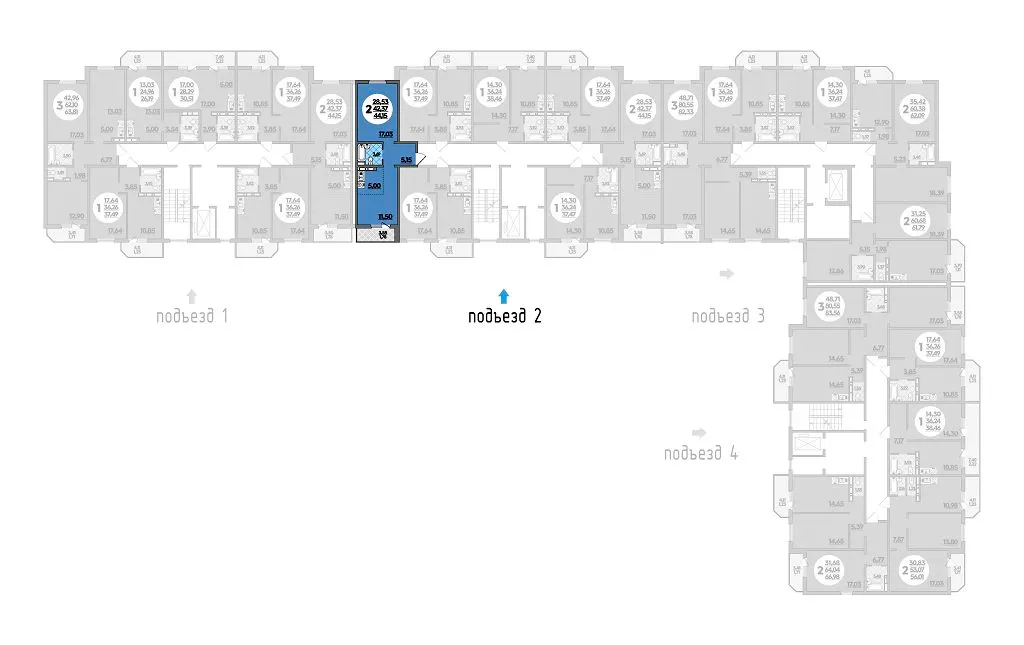 2-комнатная квартира 44.15м2 в ЖК Молодежный 2, №100