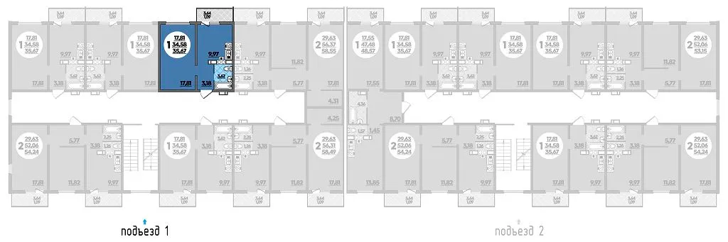 1-комнатная квартира 35.67м2 в ЖК Тихорецк, №025