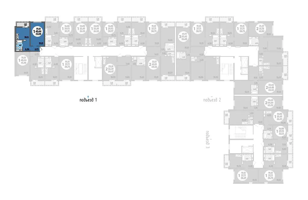 1-комнатная квартира 42.08м2 в ЖК Предгорье Лаго-Наки, №042