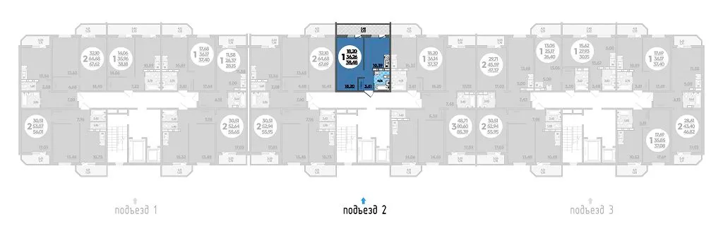 1-комнатная квартира 38.48м2 в ЖК Восточный, №124