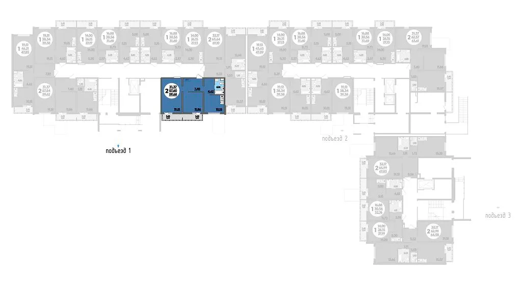 2-комнатная квартира 59.68м2 в ЖК Предгорье Лаго-Наки, №009