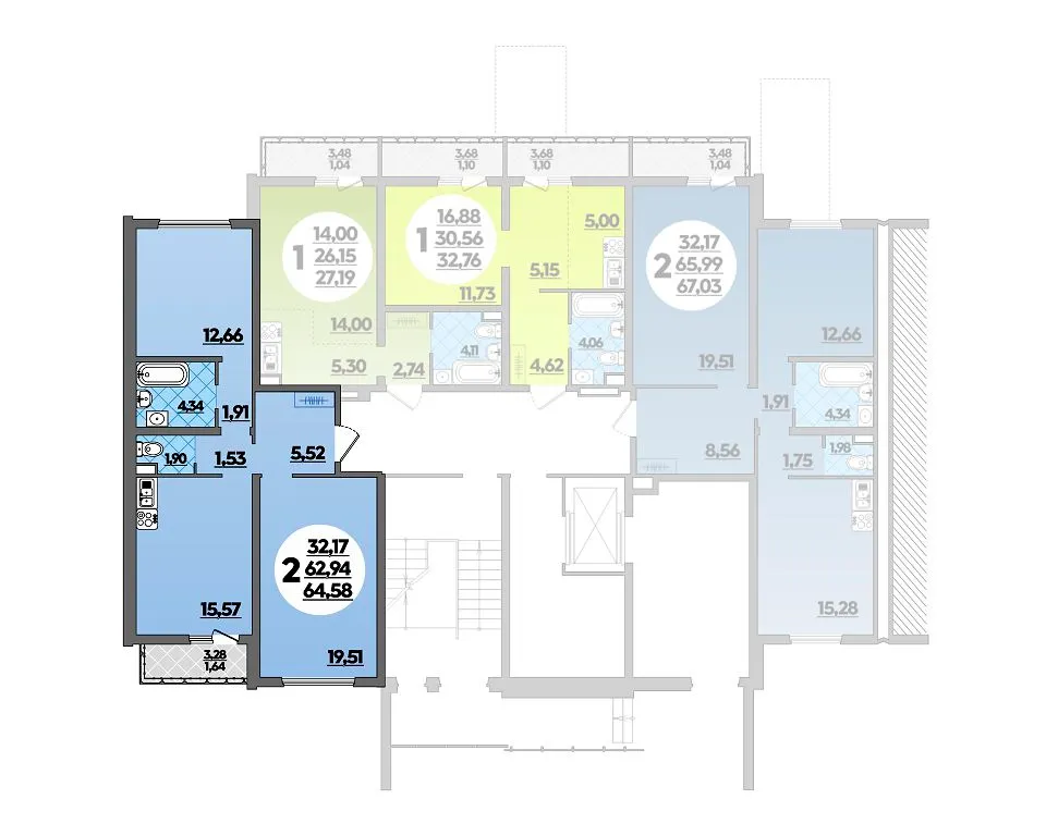 2-комнатная квартира 64.58м2 в ЖК Предгорье Лаго-Наки, №197