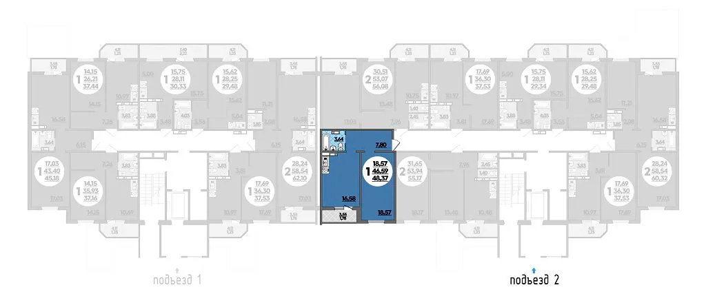 1-комнатная квартира 48.37м2 в ЖК Южная Долина, №065