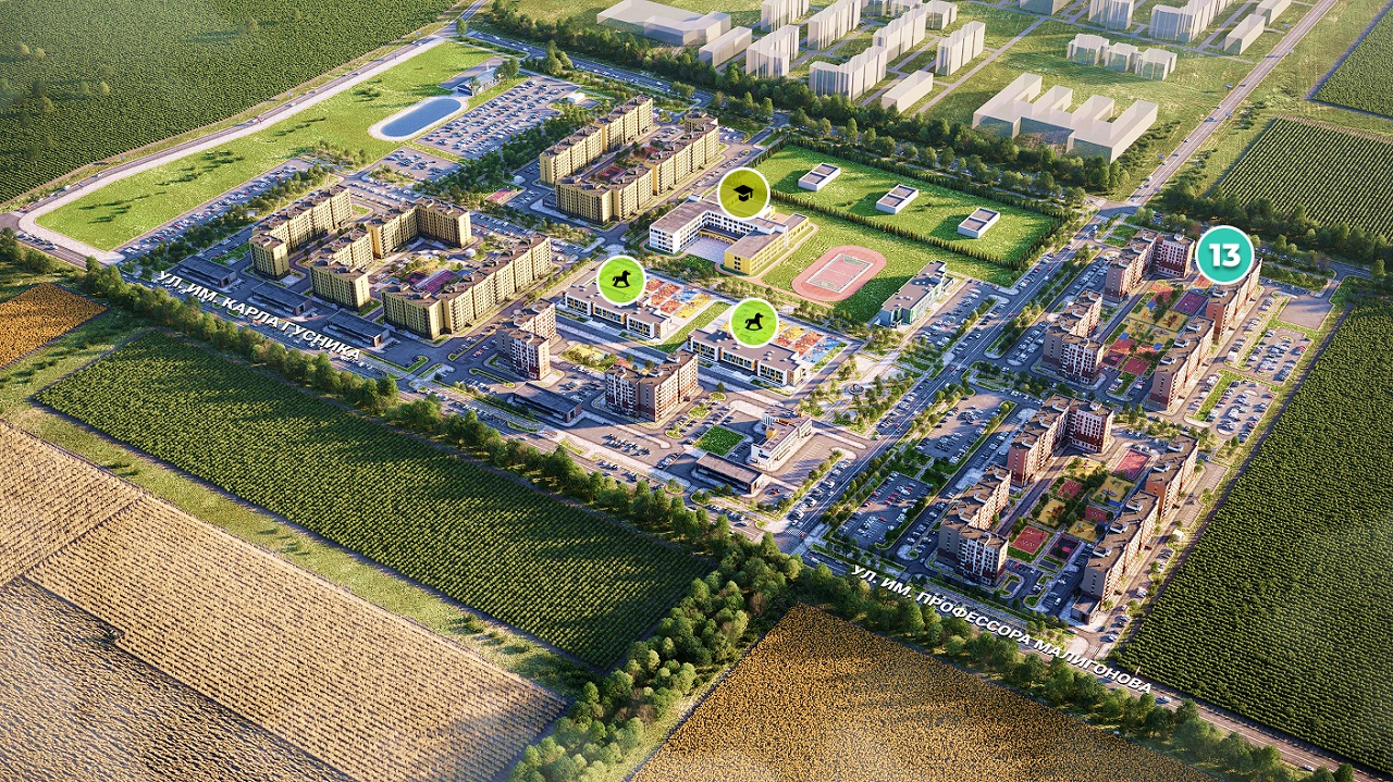 Литер 13 – это стильный фасад, удобные входные группы, комфортные планировки на любой вкус. Благоустроенные дворы с современными детскими и спортивными площадками.